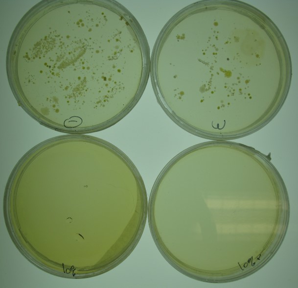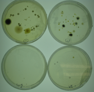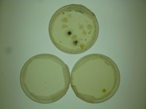 Treatments: Sterilizer filled with 10% (v/v) L-care (2,5%) in tap water. The small sterilizer was set on ‘auto’ and the whole left hand was in contact with the mist for 2 seconds. After 1 minute we touched the NAM and SAM plates randomly with our fingers and sealed the plates afterwards; Sterilizer filled with 10% (v/v) L-care (2,5%) + 75% ethanol in tap water. The small sterilizer was set on ‘auto’ and the whole right hand was in contact with the mist for 2 seconds;